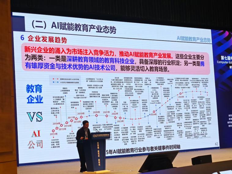 “人工智能驱动的教育范式革新”分论坛,来自浙江大学、上海交通大学等高校的同行分享AI技术在课堂教学中的实践应用经验,探讨人机协同教学新模式;产教交流会环节,华为、腾讯等领军企业代表介绍智能算力平台共建、开源生态合作方案。