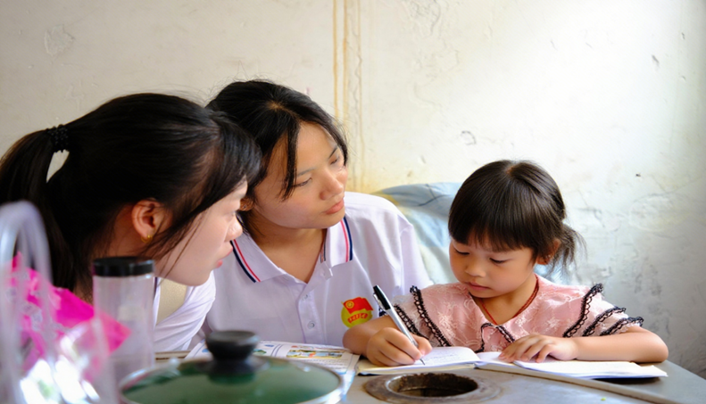 课业辅导融推普,双轨共育助成长。针对前期发现的留守儿童暑期学习缺指导、方言影响表达等问题,团队在村委会开设“语翼爱心课堂”,实现“知识传授+普通话推广”双轨服务。队员们通过拼音正音训练纠正孩子们方言习惯,借助“数字智力接力游戏”辅助汉字记忆,将普通话融入课堂互动与课后交流。孩子们在轻松氛围中巩固知识、提升表达,让知识与语言的暖流浸润童心。