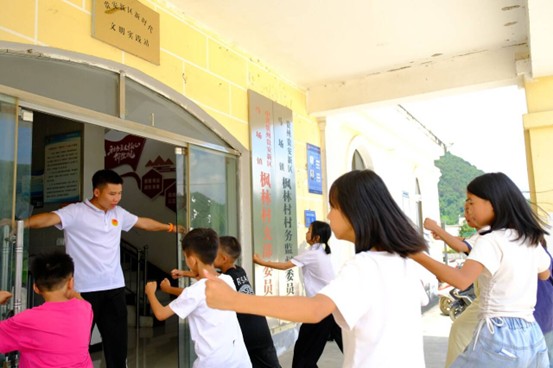 军体拳教学强体魄,青春朝气筑防线。为丰富儿童暑期生活,团队创新开设“少年军体拳课堂”,由团队成员退伍军人小康带队,教授军体拳基本招式。“出拳要稳如守家园,步伐要齐似共协作”,孩子们一招一式认真演练,既强健体魄,又涵养纪律意识。这与前期安全理念相呼应,从“知安全”到“强体魄”,少年活力与安全意识共同构筑乡村“青春防护墙”。