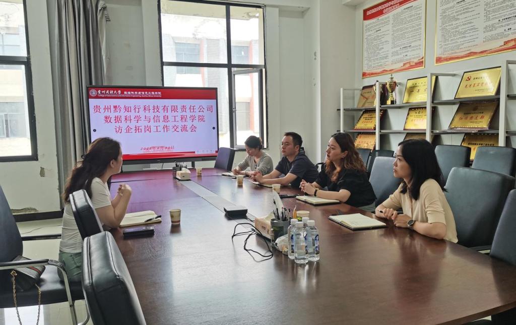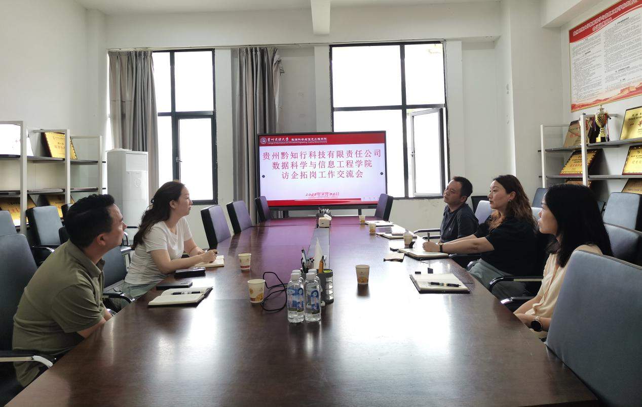 为进一步深化校企合作,促进产教融合,拓宽毕业生就业渠道,2025年6月30日,贵州黔知行科技有限责任公司法定代表人陈凌一行来我院开展访企拓岗工作交流会。我院党委书记刘璐、副院长霍雨佳、党委副书记赵孝梨及相关职能部门代表出席座谈会,双方就人才培养、实习就业、科研合作等议题展开深入交流。