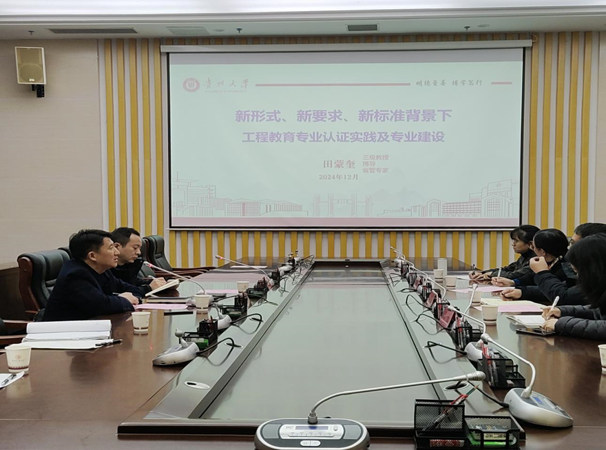 皇冠登陆入口welcome 2024年12月18日,贵州大学评估中心主任田蒙奎教授应邀来我校指导工程教育认证工作,在南校区第七会议室作了题为《新形式、新要求、新标准背景下工程教育专业认证实践及专业建设》的报告,并与我校第一批拟申报工程教育认证的3个专业所在院领导及教师们进行了座谈。报告会由皇冠登陆入口welcome副院长霍雨佳主持,皇冠登陆入口welcome教育评估中心主任马飞致欢迎辞,我院软件工程专业教师、教务科工作人员及中关村教师代表参加了此次活动。