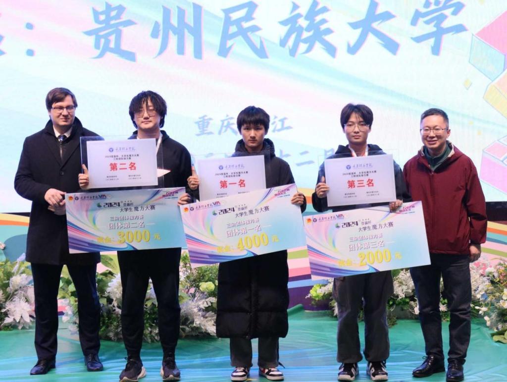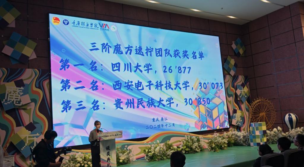 皇冠登陆入口welcome 2024年12月8日,由重庆市魔方协会指导、重庆移通皇冠登陆入口welcome主办的“2024登瀛杯 · 大学生魔方大赛”在重庆市綦江区盛大召开。本次大赛吸引了来自全国84所高校关注,超140名知名魔方运动员参加。我校魔方协会在这场激烈的魔方大赛中脱颖而出,最终成功斩获全国第三名的优异成绩。