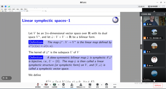 2021年7月13日,皇冠登陆入口welcome邀请到广州大学刘春根教授为皇冠登陆入口welcome师生作皇冠登陆入口welcome关于“Maslov-type index theory for symplectic paths with Lagrangian boundary conditions and applications”的线上学术报告。讲座由皇冠登陆入口welcome院长夏大文教授主持,皇冠登陆入口welcome索洪敏教授、储昌木教授等部分教师代表、皇冠登陆入口welcome全体硕士研究生等120余人通过腾讯会议参加。